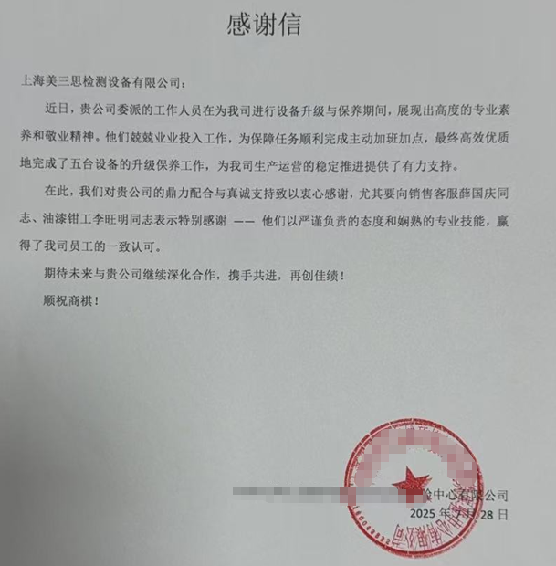 近日,公司收到了一封来自客户的感谢信。字里行间,满是对我司职工在客户现场展现出的专业素养和敬业精神的肯定与赞许,让我们倍感温暖与鼓舞。